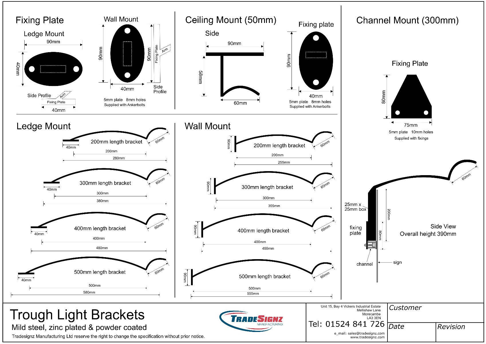 - Channel Mount - available in a 300mm bracket only